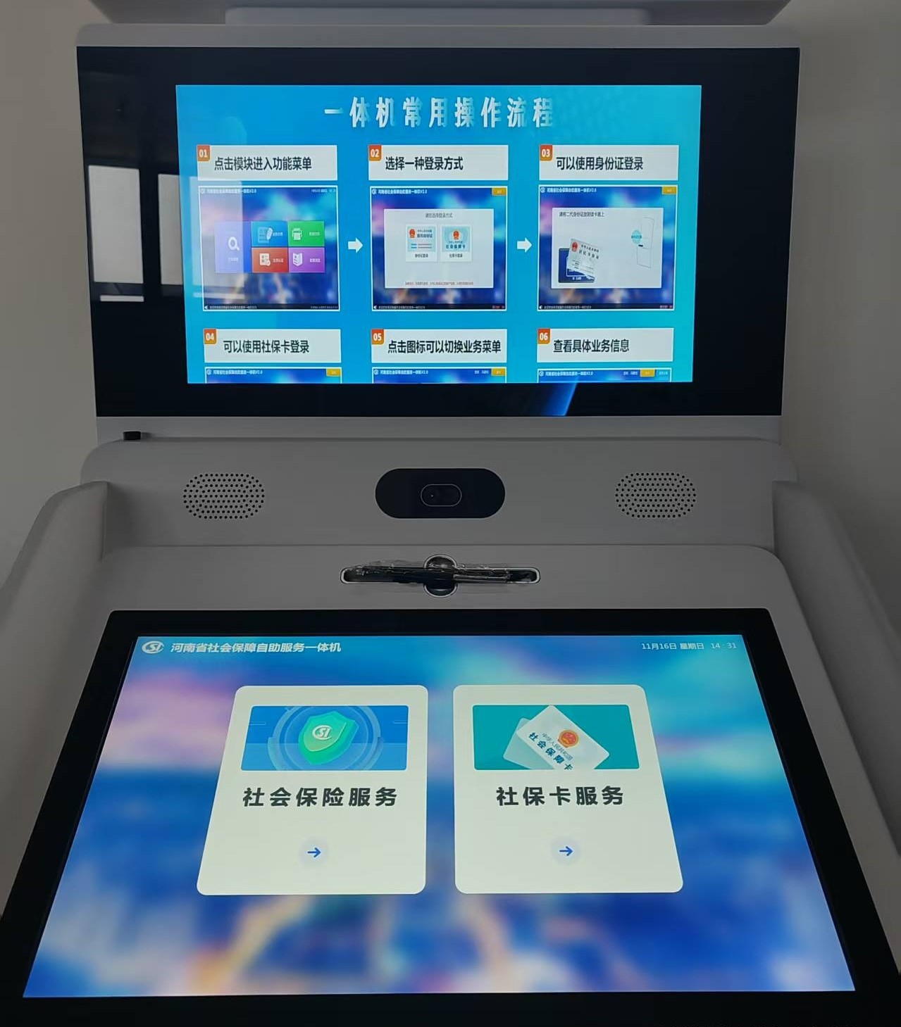 智能社保業(yè)務(wù)一體機(jī),推動(dòng)信息化與社保服務(wù)深度融合。一機(jī)通辦,自助辦理主要社保業(yè)務(wù)。可通過身份證、普通社???、金融社??ā⑷四樧R(shí)別、指紋識(shí)別等多種方式登錄,實(shí)現(xiàn)查詢、打印、社保業(yè)務(wù)辦理等服務(wù)事項(xiàng)。
